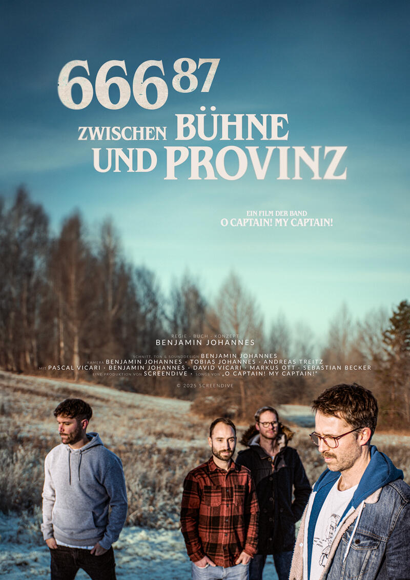 Der Dokumentarfilm "666⁸⁷ - Zwischen Bühne und Provinz" begleitet die saarländische Band O Captain! My Captain! auf einer intensiven Reise: von den ersten Aufnahmen ihrer neuen EP bis hin zu den leisen, persönlichen Augenblicken in den Interviews.Ursprünglich geplant als schlichtes Videotagebuch im Aufnahmestudio, entfaltet sich die Geschichte zu einem vielschichtigen Porträt über gemeinsame Leidenschaft, Freundschaft und persönliche Beziehungen – und über die Suche nach einem eigenen Weg in einer Musiklandschaft, die nur selten Raum für Alternativen bietet.Dabei zeigt der Film nicht nur die kreative Arbeit der Band, sondern auch die Hindernisse, mit denen Musiker*innen heute konfrontiert sind: Festivals verschwinden, Netzwerke brechen weg, Sichtbarkeit geht verloren. Die Kamera fängt ein, wie sich diese gesellschaftlichen Probleme im Kleinen widerspiegeln – in den Emotionen, Gesprächen und Entscheidungen der Band.Durch eindrucksvolle Bilder, ehrliche Interviews und eine intime Nähe zum Geschehen entsteht ein authentischer Einblick in die Welt abseits des Mainstreams.Der Film ist mehr als eine Musikdokumentation: Er ist ein Statement über künstlerische Freiheit, Zusammenhalt und den Wert unabhängiger Kultur.Entstanden ist das Projekt in kompletter Eigenregie: Von der Konzeption über Recherche, Regie und Schnitt bis hin zu den Interviews lag alles in den Händen der Band. Für Regisseur Benjamin Johannes ist es das erste filmische Werk – ein Debüt, das die Reise der Band und ihre Herausforderungen ebenso nah wie authentisch einfängt.